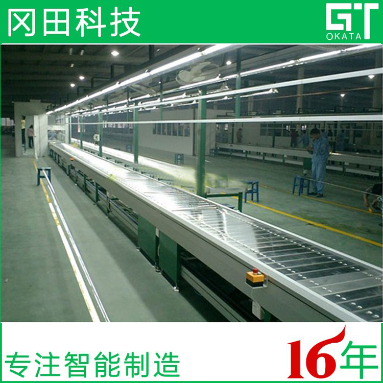 此類線體運(yùn)行平穩(wěn),無須工裝板,能使大型家電、機(jī)車等在線上裝配生產(chǎn),也應(yīng)用于重物的物流,