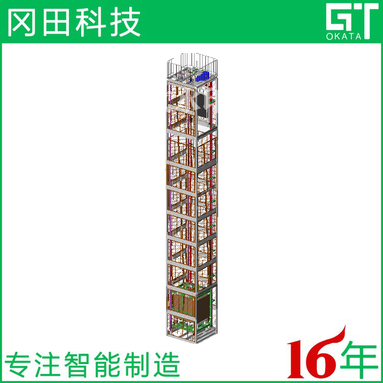 2、升降平臺的上下行程均可輸送物料,在升降平臺的一個循環(huán)過程中可使物料同時雙方向流動。