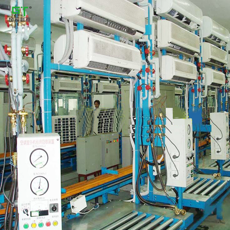 空調(diào)檢測(cè)線:用于各種空調(diào)器室內(nèi)、外機(jī)各性能參數(shù)的檢驗(yàn),整個(gè)系統(tǒng)具有穩(wěn)定可靠,精度高,操