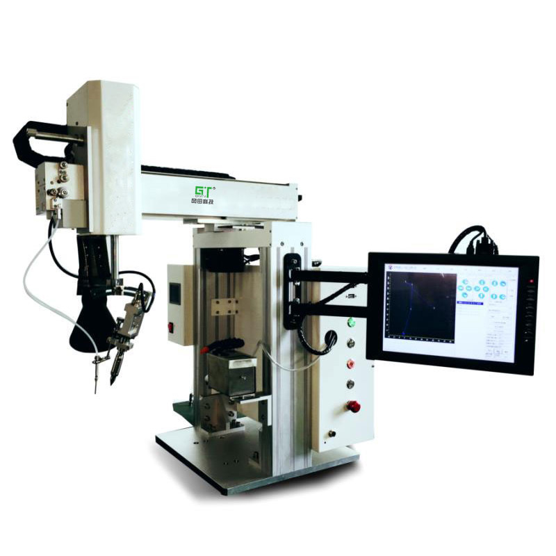 A.X、Y、Z、R四軸復(fù)合運(yùn)動,可滿足立體空間的需求;B.R軸可實(shí)現(xiàn)旋轉(zhuǎn)焊錫功能;C.Z軸采用同步帶或精密絲桿控制(可選擇);D.雙Y軸平臺交替上下料,機(jī)器作業(yè)無需停止;注:此設(shè)備為標(biāo)準(zhǔn)機(jī)器,更大的行程可以根據(jù)產(chǎn)品定制。